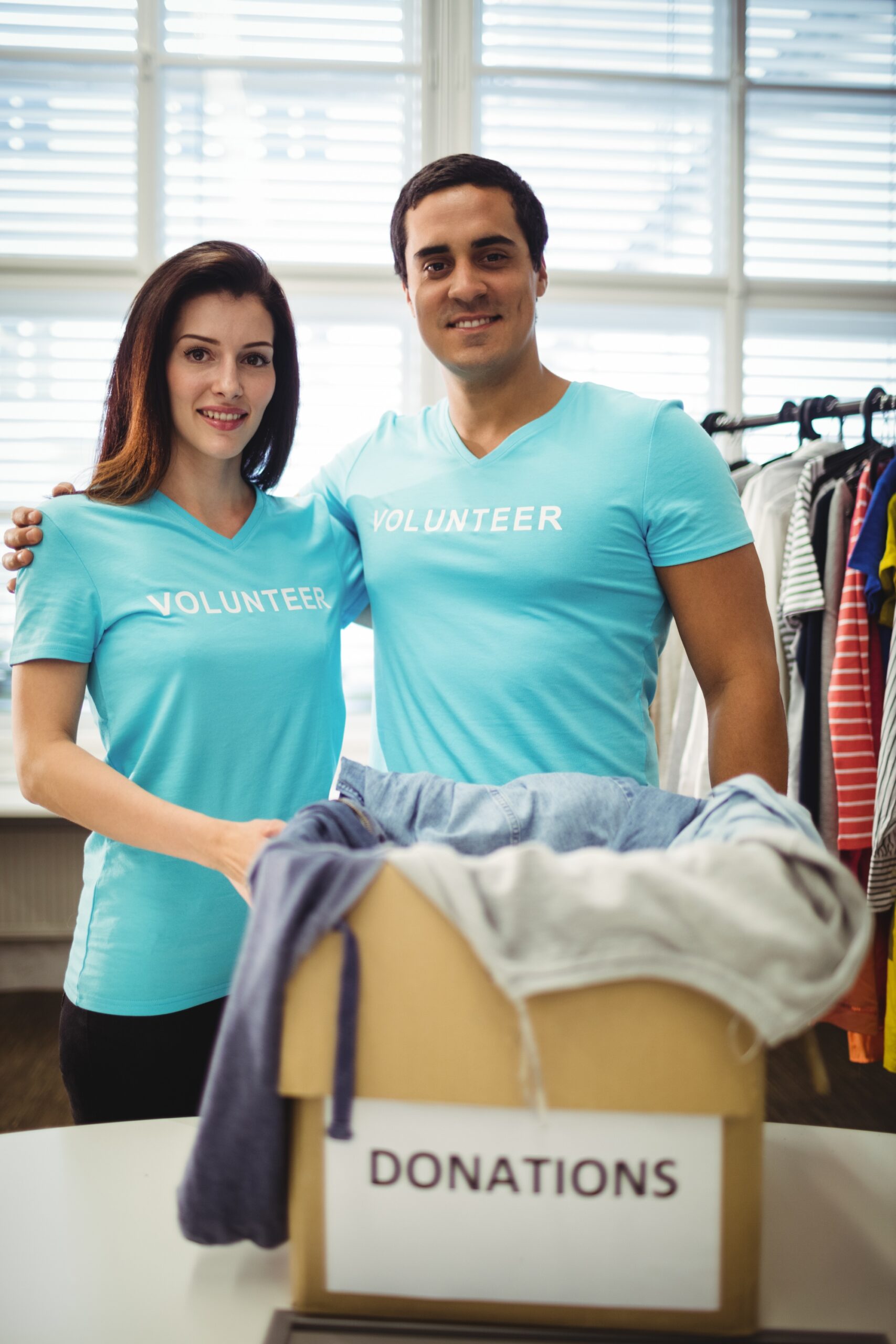 volunteer-couple-standing-with-donation-box